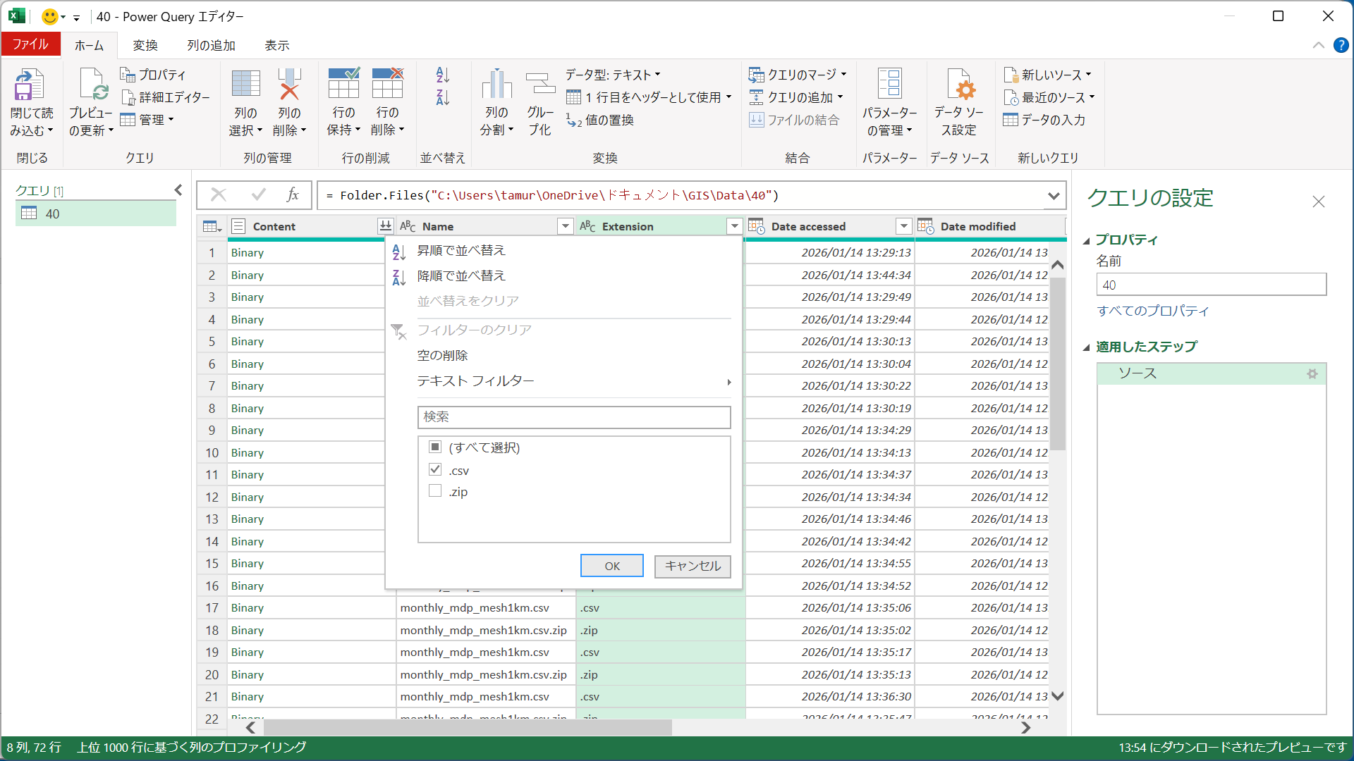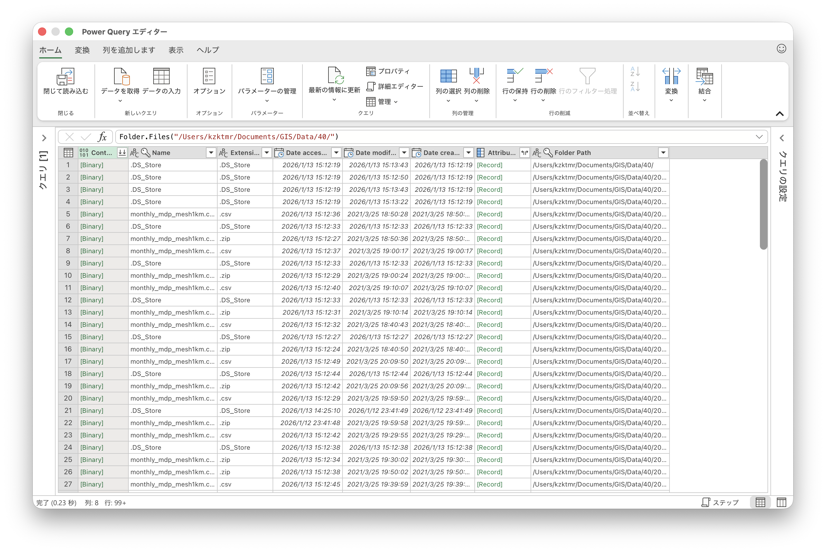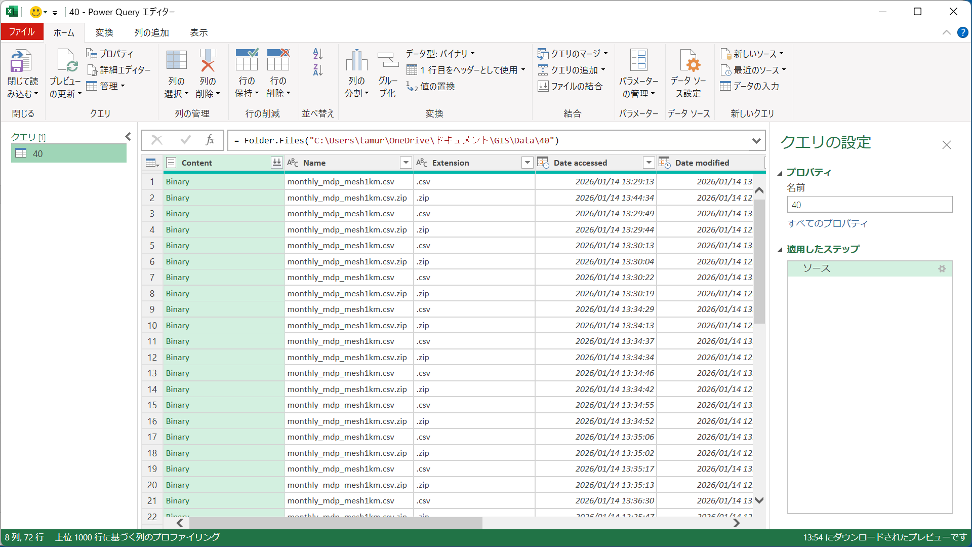 ソース = Folder.Files("/Users/kzktmr/Documents/GIS/Data/40/")