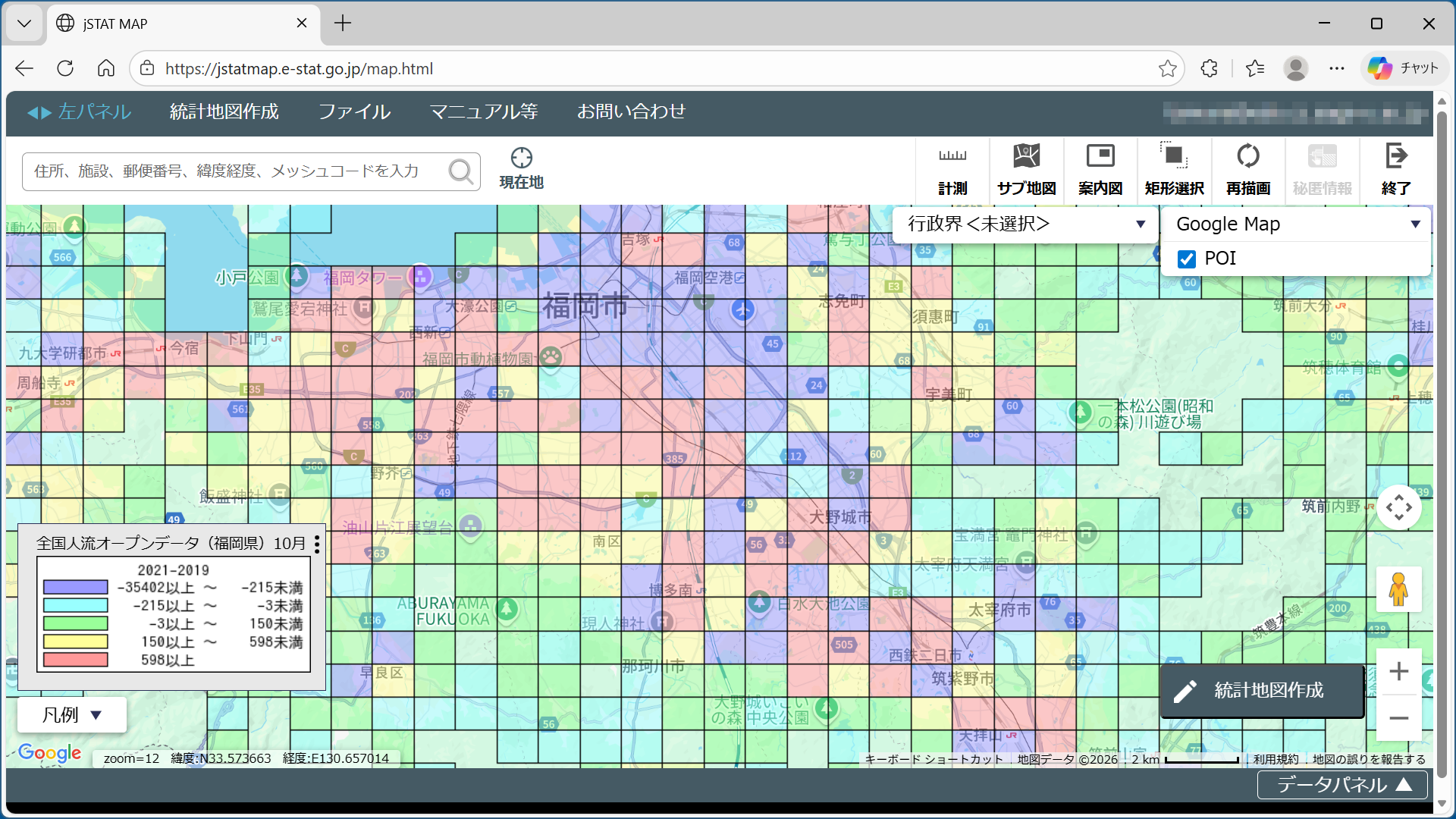 jSTAT MAPに読み込んで、統計地図を作成してみましょう。