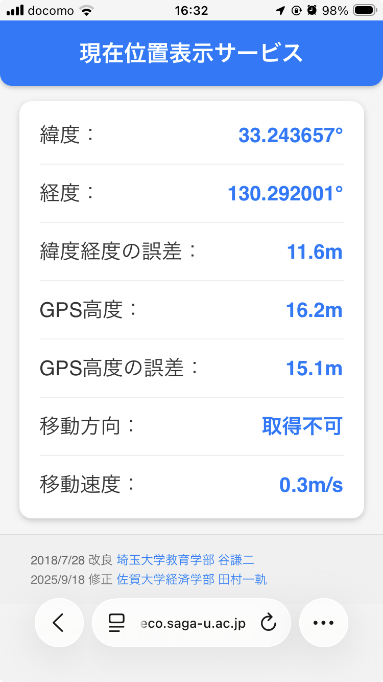 - スマホはGPS受信機になる(現在位置の緯度経度が分かる)