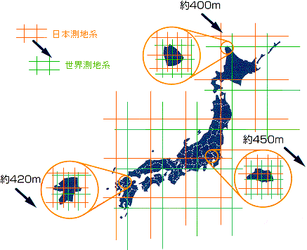 日本測地系と世界測地系の違い(国土地理院ウェブサイトより)