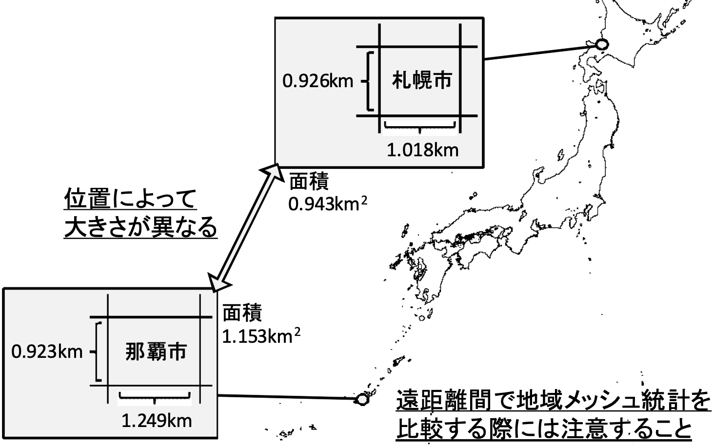 - 2000年より前の地域メッシュ統計には、従来の日本測地系での地域メッシュ区分によって編成されたデータの場合がある。